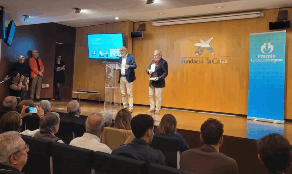 El pasado miércoles 15 de octubre tuvo lugar la ceremonia de entrega de los XXIV PREMIS FUNDACIÓ FIRAGRAN en el Palau Macaya de Barcelona, acto que fue presidido por D. Juli Simón, presidente de la fundación. En el ámbito Cívico y Social, la Entidad premiada fue la RED SOLEDADES, por su actividad contra la Soledad No Deseada de las personas mayores. Esta red, donde nuestra asociación forma parte de manera muy activa, está formada por más de 54 entidades privadas, públicas, fundaciones y universidades de nuestro país, todas con el objetivo de mitigar los efectos de la Soledad No Deseada.