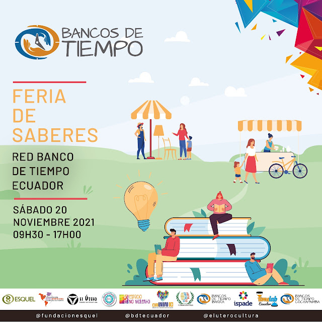 La Red de Banco del Tiempo en Ecuador organiza este próximo sábado día 20 la «FERIA DE SABERES RED BANCO DEL TIEMPO ECUADOR». Este evento propone juntar a todas las agencias que forman parte de la Red Ecuador en un solo espacio público para que todas y todos puedan participar y conocer en las distintas dinámicas que desarrollan cada socia/o pertenecientes a las agencias participantes, estas acciones se desarrollan dentro del intercambio de servicios, saberes y habilidades sin uso de dinero.