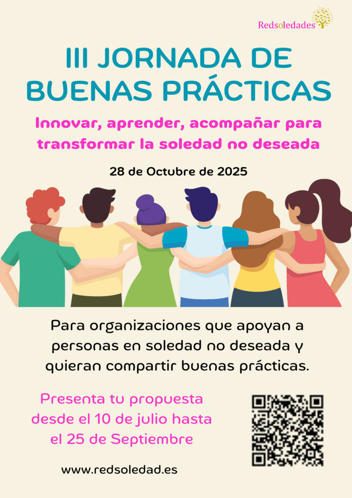 La RED SOLEDADES, organización en la que participa nuestra asociación de manera activa, anuncia la apertura de la convocatoria para las III Jornadas de Buenas Prácticas en la Lucha contra la Soledad No Deseada, que se celebrarán el próximo 28 de octubre de 2025 en formato online.